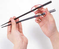 El segundo palillo debe colocarse entre el dedo pulgar y dedo índice o indicador.