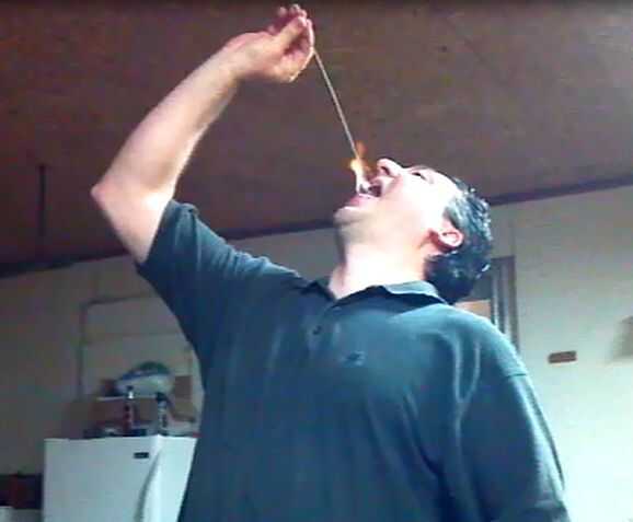El truco aquí es que no hay ningún truco. Están poniendo fuego muy real dentro de su cabeza. A quemarse un poco. Nada importante pero después de hacerlo unas cuantas veces te acostumbras a la luz solo en su lengua y sus papilas gustativas volver a la normalidad en un día. La parte más dura de la ley es conseguir sobre el componente psicológico que no llamas las cosas en la cara del palillo. Una vez que has conquistado que eres home gratis.