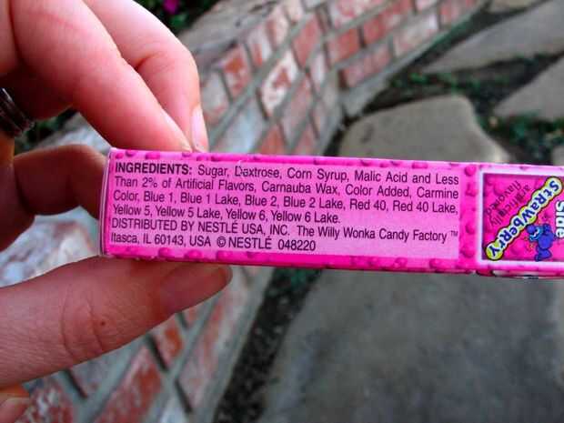 Ácido carmínico carmín, también llamado, es un fuerte pigmento rojo que se encuentra en una gran variedad de lugares donde insectos machacados (presumiblemente) no pertenecen: Yoplait yogurt fresa, Tropicana zumo de pomelo, Campari, cerezas al marrasquino y podrían hacer la pregunta solo por limonada rosada necesita ser color de rosa.
