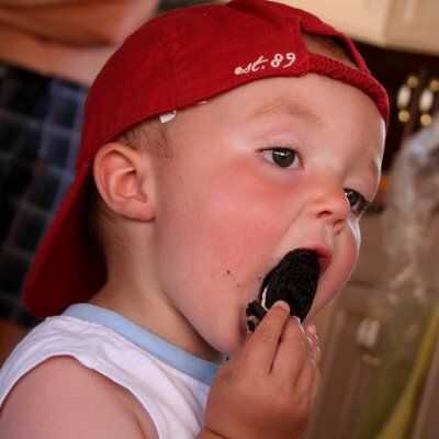 Proceder a lamer la crema contenida en una de las bases de la cookie. No hay ninguna razón clara por qué se hace, pero es parte de la galleta de oreo tradicional ritual de comer.