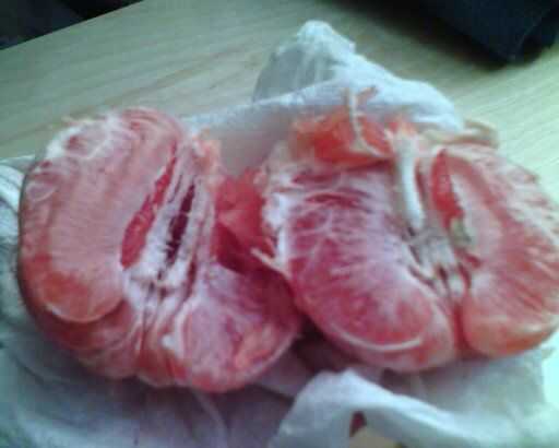 Dividir el pomelo por la mitad. Coge los restos de la madre, indicados a continuación y utiliza como punto de partida de pelar más médula. Puedes ver cómo funciona en la segunda imagen.