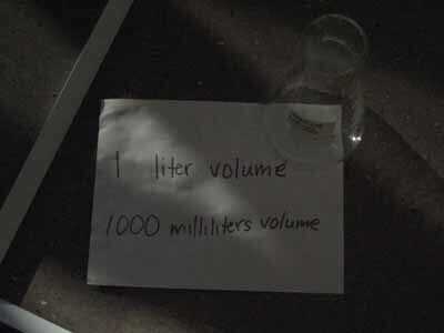 Asegúrese de que la pantalla está en un lugar donde los estudiantes pueden recoger y sentir la diferencia entre el gramo y el kilogramo y ver la diferencia en volumen entre el litro y el metro cúbico. Para realizar la pantalla un poco más visual que siempre puede agregar agua coloreada en el frasco o vaso de precipitados.