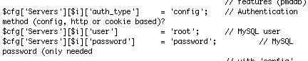 $cfg ['servers'] [$i] ['usuario'] = 'root';