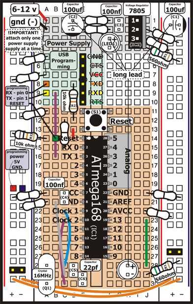 Simplemente imprimirlo, ponen sobre el protoboard y empezar a colocar los componentes o siga las instrucciones de estilo de Lego paso a paso a continuación.