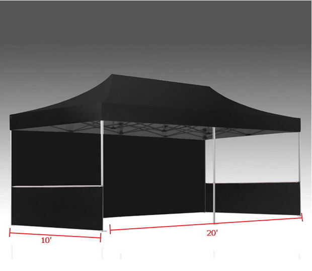 La forma más común de carpa al aire libre canopy es cuadrada o rectangular, disponibles en tamaños 10' x 10', 10' x 15', 10' x 20' o 20' x 20'. Otros, menos comunes, tamaños incluyen 12 'x 12', 14 'x 14' y 16' x 16'.