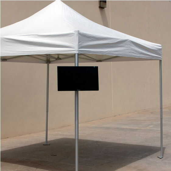 Si está buscando para incorporar elementos multimedia en su pantalla al aire libre, considere la posibilidad de equipar tu tienda de pabellón con un accesorio de montaje video. El Monte se une a la pierna de su tienda utilizando la abrazadera de riel de aluminio resistente y puede soportar una pantalla plana monitor hasta 30".