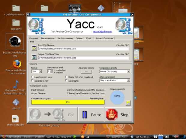 En la casilla que dice nombre del archivo ISO de entrada, buscar el ISO y luego haga clic en abrir, caja en la exportación de un archivo aparecerá automáticamente en el mismo lugar que la ISO original, esto puede cambiar si quieres, pero no voy. Inferior de la pantalla puedes ver un Seleccione el archivo de salida puede cambiar entre en CSO, DAX y JSO para psp tienes que asegúrate de que tienes configurado con las OSC para una tasa de compresión rápida. También tienes que mantener el nivel de compresión 9 para asegurarse de que tiene una compresión de alta calidad.