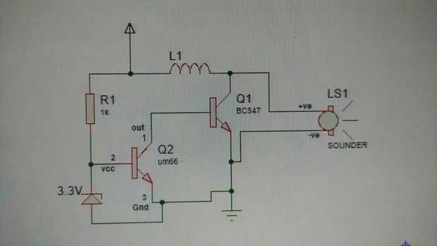 PIN dos (vcc) conectar al positivo con la ayuda de resistencia de k 1 y añadir un 3.3v zener diodo para proteger um66 de voltaje. Cátodo se conecte a la base del npn y el ánodo a tierra.