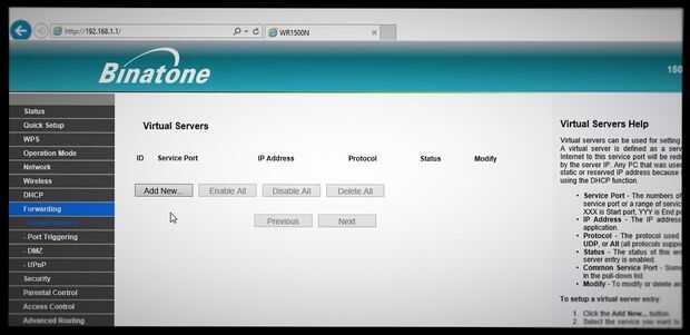 Apartado de port forwarding allí y poner lo siguiente al agregar la nueva entrada: