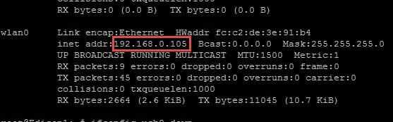 8. Anote la dirección IP, como se muestra en la imagen de arriba. Esta es la dirección de IP de la placa. Alternativamente, escriba el comando: