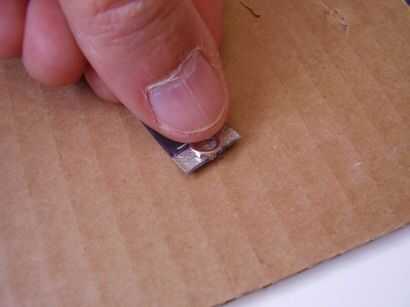 Para conectar el obtener células un sujetador, coloque el anillo con los dientes hacia el plástico, en el lado de la silicona, coloque la parte inferior de la célula sobre un trozo de cartulina y presione con el pulgar. De esta manera los dientes penetran dentro a través de la película plástica y la terminal de metal.
