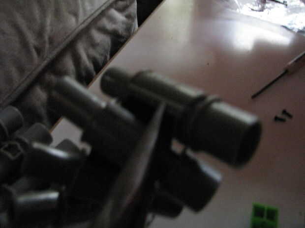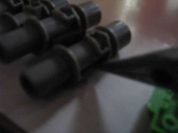 En caso de tener dudas (aunque no sé por qué), este es el punto de no retorno. Esto es donde sacamos la ronda por lo que entonces podemos damos a la segunda correa. Si quiere volver, armar nuevamente la pieza verde y atornille los tornillos de nuevo.