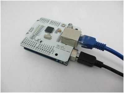 El Arduino Ethernet Shield permite a una placa Arduino conectarse a internet. Se basa en el chip Wiznet W5100 ethernet (hoja de datos).El Wiznet W5100 proporciona una pila de red (IP) capaz de TCP y UDP. Soporta hasta cuatro conexiones de socket simu