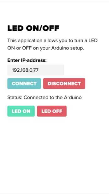 Entrada de la dirección IP previamente escribió en el campo titulado Enter dirección IP y pulse el botón conectar . Cuando está conectado a la prensa de la Junta el botón LED o de LED para pin 2 alta o baja, que enciende el LED off respectivamente. Fácil como la empanada.