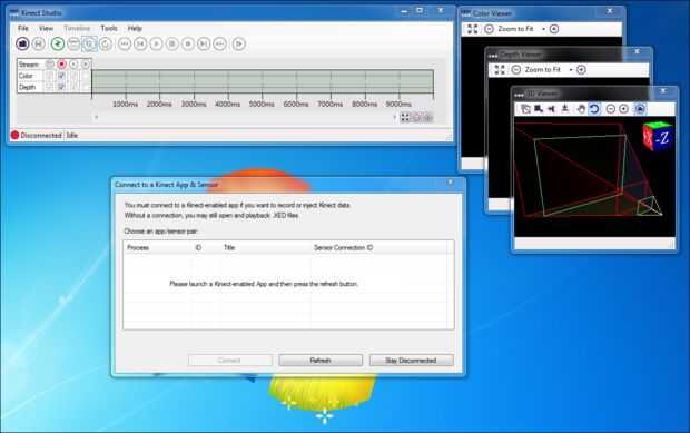 Una de las aplicaciones es el estudio de Kinect que es compatible con otros programas en el trabajo con el Kinect.