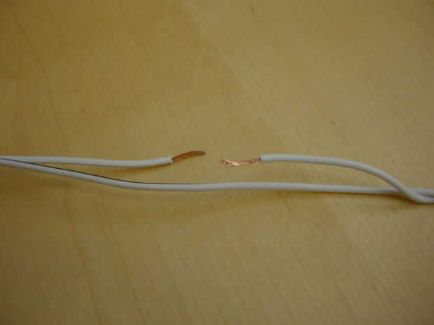 Corte una línea de cable (cable tiene generalmente una marca para un lado) en el centro. Luego tira de los lados del corte.