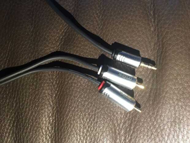 En el amplificador, hay un conjunto o más puertos con cables RCA de entrada. Básicamente transfiere la señal de la fuente al amplificador. El conector blanco es para el canal izquierdo y el conector rojo es para el derecho. Para un dispositivo como el iPhone, es necesario un combinador para mezclar la izquierda y el canal derecho, puesto que hay solamente un jack de 3,5 mm del iPhone.
