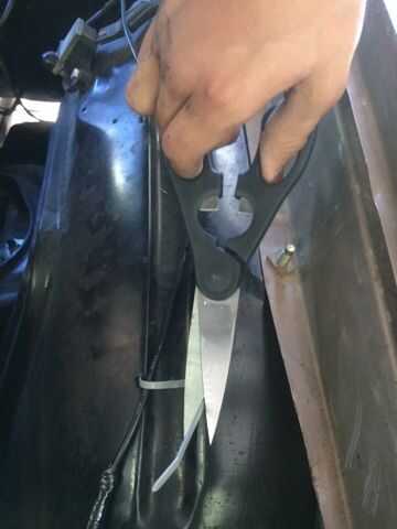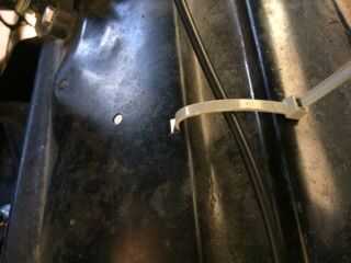 Puesto que el cable está conectado ahora tenemos que hacer un Consejo de seguridad. Tomar algunos lazos zip y atarlos a un lugar fijo en el compartimento del motor. Ahora corta el cordón sobrante para una apariencia limpia.