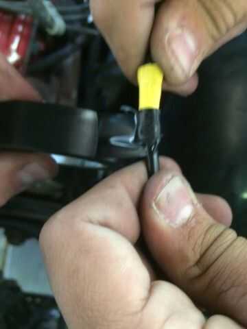 Ahora conseguir el cable en su lugar. Conectarse al cable de 10 calibre y colóquelo a través del agujero en la pared de fuego. Este será el cable que conecta el interruptor a su cable de alimentación del ventilador. Así que ahora tenemos un cable que pasa por la bahía del motor a la cabina de su coche! Ahora toma el cable de tu ventilador y conecte al cable que va a través del cortafuegos. Utilizaremos una conexión de extremo a estos se funden. En el extremo del cable y el extremo del cable firewall poner una conexión a tope entre ellos y fijarlo con la abrazadera para hacer que permanecer en el lugar. Ahora fácilmente los cables de cinta y conexión para mantener en posición a tope.