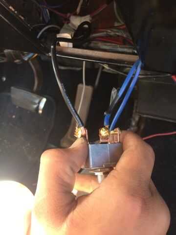 El alambre a través de la pared de fuego ahora se conectará al switch. Desatornille el vínculo según de posición del interruptor, poner el cable alrededor de ella y simplemente cinta adhesiva! Luego asegúrese de que el el alambre azul Power link (medio acoplamiento del interruptor) se conecta al cable principal de encendido del coche. Este será el gran cable rojo conectado a la ignición y a veces incluso el cable rojo (positivo) a la batería. Este cable de encendido estará en su cabina debajo del tablero conectado al sistema de clave. Tomar ahora que cable azul y el golpecito en el rojo del alambre (después el fusible) y cinta para arriba!
