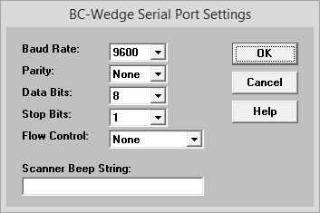 Bits de parada. En orden para su PC para comunicarse con su escala, la configuración que seleccione en el software BC-cuña debe coincidir exactamente con la configuración que utiliza su escala. (La opción "Flow Control" y la cadena de"pitido de escáner" pueden ser ignorada.)