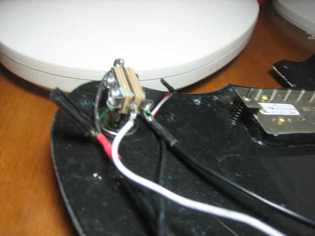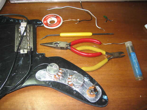 La guitarra en este caso es una Jagmaster, pero esto debería funcionar también en muchas otras guitarras de recolección/2 perilla 2 que tienen un interruptor de 3 vías.