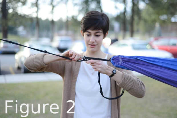 3.1 usando el gancho en los extremos de la hamaca, cerradura de gancho en una de las muescas encontrado en una cuerda atada al árbol (ver figura 2)