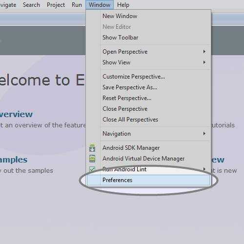 - Windows: Después de Eclipse se ha reiniciado, haga clic en 'Ventana' en el menú de aplicaciones.