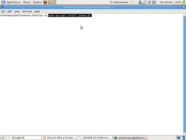 Después de decir de la línea "[sudo] contraseña:", escriba su contraseña (que parece que no está escribiendo, pero aún está recogiendo cualquier tecla que golpear), y cuando le pide que confirme con "s/n" (sí/no), escriba en "y" y pulse el [enter] clave. Esto automáticamente instalar todos los componentes de GNOME Do y hacer accesos directos a ella en la pestaña de aplicaciones.