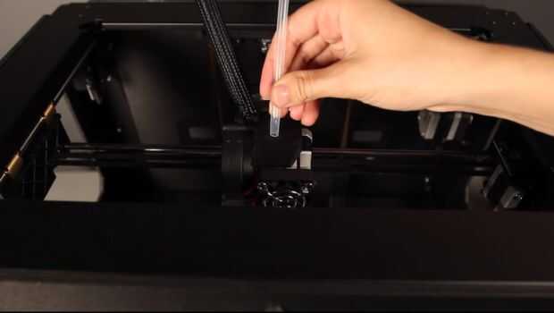 - Encuentra el tubo de plástico transparente (en la caja de accesorios) y enrósquelo en el agujero encima de la extrusora