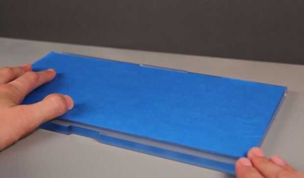 El Makerbot incluye 3 hojas de cinta azul, tamaño para ajustarse a la plataforma de la construcción. Pega con cuidado en la placa de acrílico fabricación de un lado a otro, tratando de evitar la creación de arrugas u ondulaciones.
