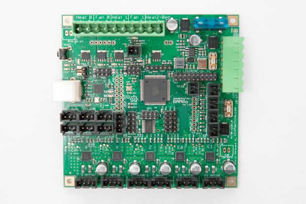 las impresoras es una placa electrónica all-in-one para todas sus necesidades de impresión 3D. Es el sucesor del popular escudo de rampas (escudo de Pololu Arduino Mega RepRap) usado para controlar la mayoría de las impresoras 3D RepRap.