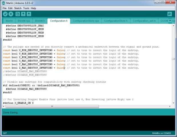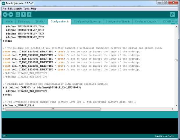 El segundo de los topes es cuando se utiliza el conector del medio con el conector de debajo del botón de disparo del interruptor. En este caso, la opción ENDSTOP_INVERTING en el firmware de Marlin debe establecerse en true (ver fotos cuarto y quinto).
