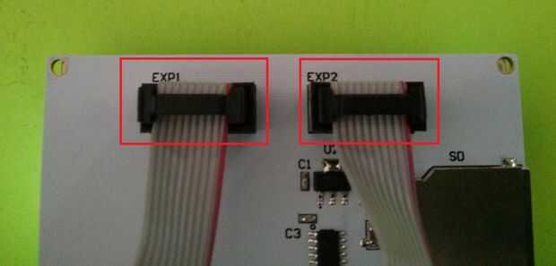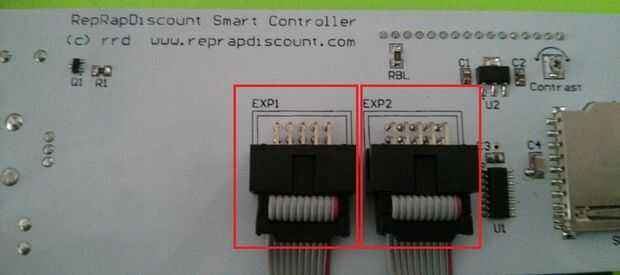 Entonces puede conectar los cables de cinta (que deben suministrarse con el controlador del LCD) para los conectores EXP1 y EXP2 en el controlador de LCD inteligente o en el controlador de LCD gráfico completo (ver imágenes)