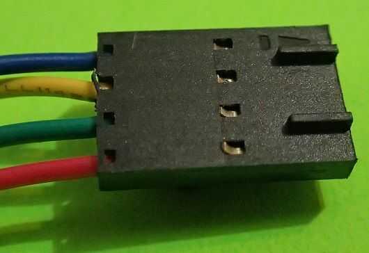 Los cables del motor están codificadas por colores y debe insertarse en el orden siguiente: azul - amarillo - verde - rojo si tienes un motor con los colores de los cables. El cable azul va en la ranura de la carcasa donde se encuentra el identificador de circuito (el pequeño triángulo en la parte superior derecha de la cubierta en la imagen de arriba). Si está utilizando un motor con un cable negro en lugar de un cable amarillo, entonces el orden debería ser verde - azul - rojo - negro, donde el cable rojo va en la ranura de la carcasa donde se encuentra el identificador de circuito.