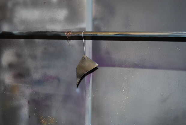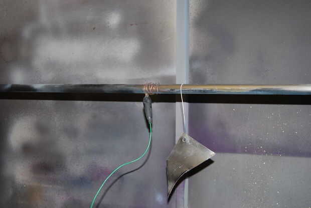 Una vez que han colgado sus piezas en la rejilla con ganchos de metal limpia Sujete su tierra a la parrilla. Asegúrese de que sus piezas son agradables y cerca del cable de tierra para asegurar la adecuada conexión a tierra. También asegúrese de que no hay ninguna capa en el gancho o el alambre que impediría conseguir una tierra agradable a su parte. Para fácil limpieza puesto abajo papel de cera.