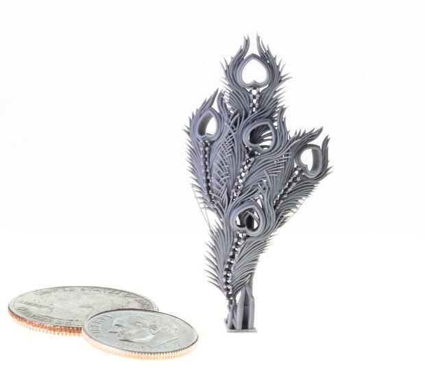 Llamamos este proceso mínima fuerza mecánica y permite Ember producir confiablemente, piezas con detalles increíbles, como la pluma de pavo real sobre. Pero tarda alrededor de 2-3 por capa y, por tanto, representa aproximadamente el 50% de la impresión tiempo y limita la velocidad de la impresión en capas de 25 micras a 18 mm/hora.