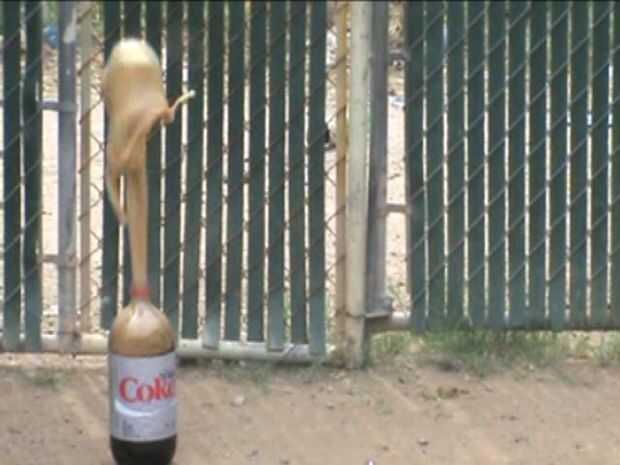 Cuando su víctima añade coque de la dieta en una taza con la mentos hielo, no pasará nada al principio, pero poco a poco se se derretir los cubos de hielo, exponiendo la Mentos y todos sabemos lo que sucede cuando mezcla de coque de dieta y mentos... Los resultados son graciosos...