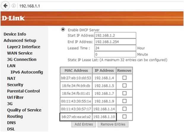 Antes de configurar la frambuesa pi, configurar la dirección estática en el router. La configuración en el router varía de modelo a modelo. En nuestro caso hemos configurado en D-Link.To evitar IP conflicto configurar en router y frambuesa Pi