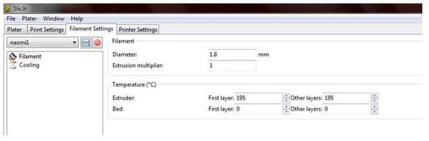 Paso 10: Slic3r (ajustes del filamento) - "Filamento"