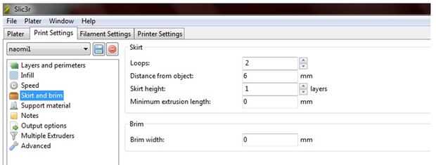 Paso 8: Slic3r (configuración de la impresión) - "Falda y borde"