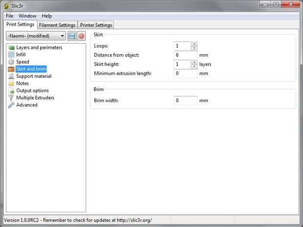 Paso 9: Slic3r (configuración de la impresión) - "Falda y borde"