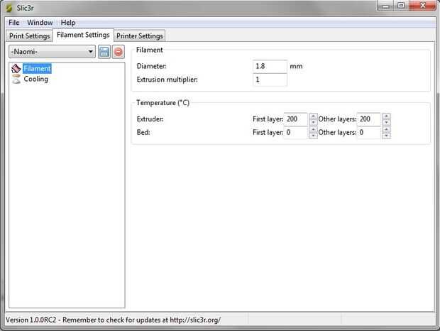 Paso 11: Slic3r (ajustes del filamento) - "Filamento"
