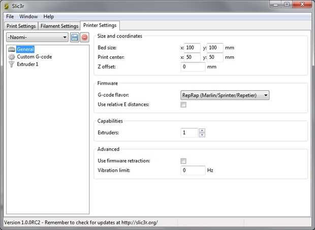 Paso 13: Slic3r (configuración de la impresora) - "General"