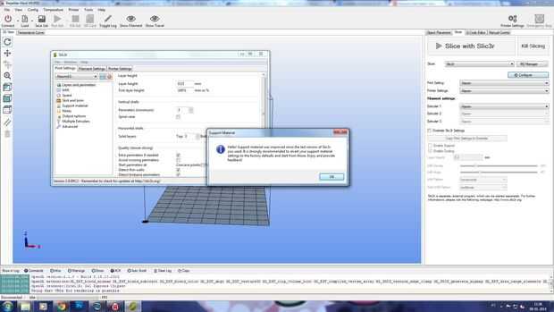 Al abrir la configuración de Slic3r por primera vez con su actualizado Repetier (V0.95) Observe la mejora el mensaje que aparece arriba!