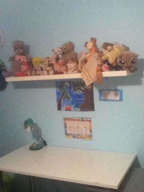 En primer lugar, usted va a necesitar un espacio para establecer su estudio. Recomiendo una mesa de tamaño mediano con cajones. Usted también necesitará una silla cómoda, sillas con altura ajustable son los mejores. También, una lámpara simple que se puede ajustar es ideal para que el esmalte de uñas se seque más rápido en su luz. Aquí está una foto de mi escritorio... Es un espacio idóneo por ejemplo. Perdón por la mierda al azar en el suelo. También, un estante encima de la mesa es ideal, como se muestra en la otra foto. (Sí, ésos son los osos de peluche en el estante. Sí, soy catorce años. Parada de irónicos)