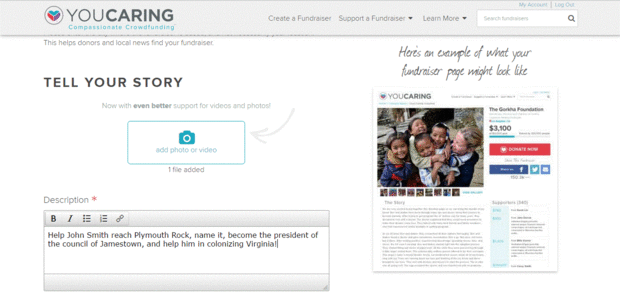 Subir una foto que bien define su recaudación de fondos (es decir del beneficiario) y a continuación en el texto cuadro escribir una descripción de su recaudación de fondos por lo que se notificación a las personas acerca de lo que exactamente es son recaudando dinero para.
