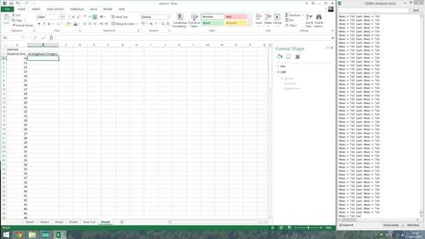 Después de 500 lecturas, una cadena de "RESET" se imprimirá como el LED parpadeará, es permitir al usuario saber cuando mover el sensor a otra distancia.