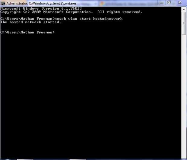 netsh wlan start hostednetwork