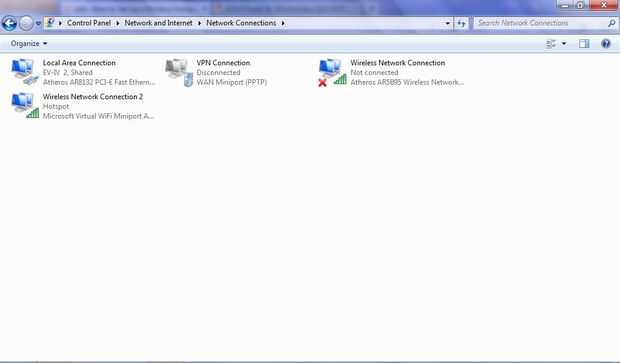 Si accede a la ventana de "Conexiones de red", te darás cuenta que el adaptador de minipuerto WiFi Virtual de Microsoft debe tener su SSID con recepción!